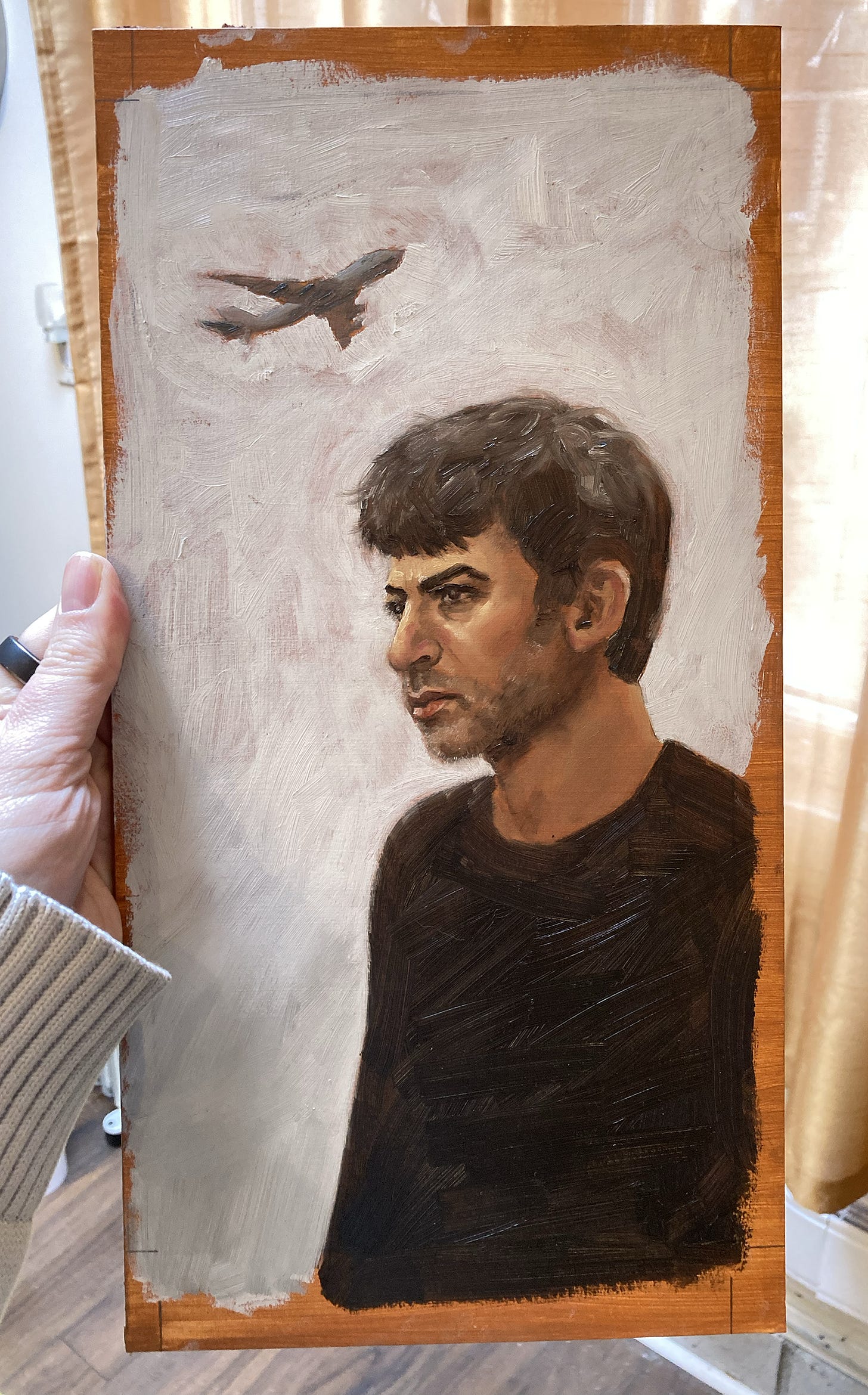 Myself, I contributed an oil painting I did over the holidays of my hero: Nathan Fielder, comedian and pilot of the famed “Miracle Over The Mojave” flight.