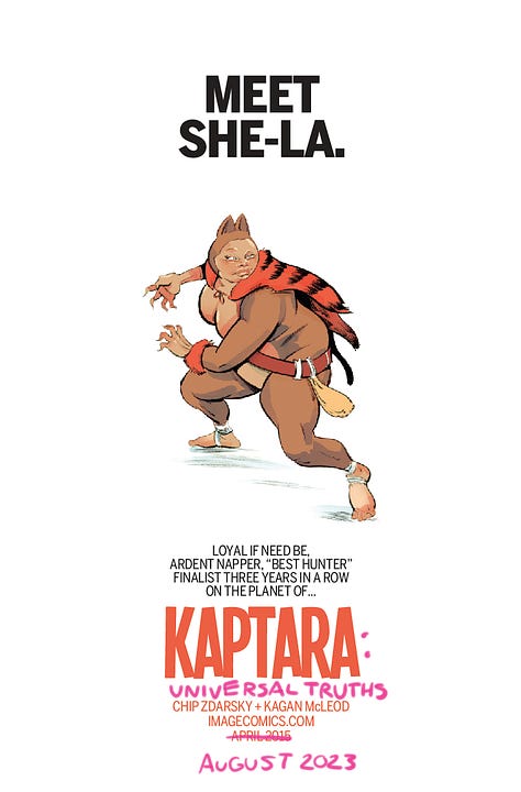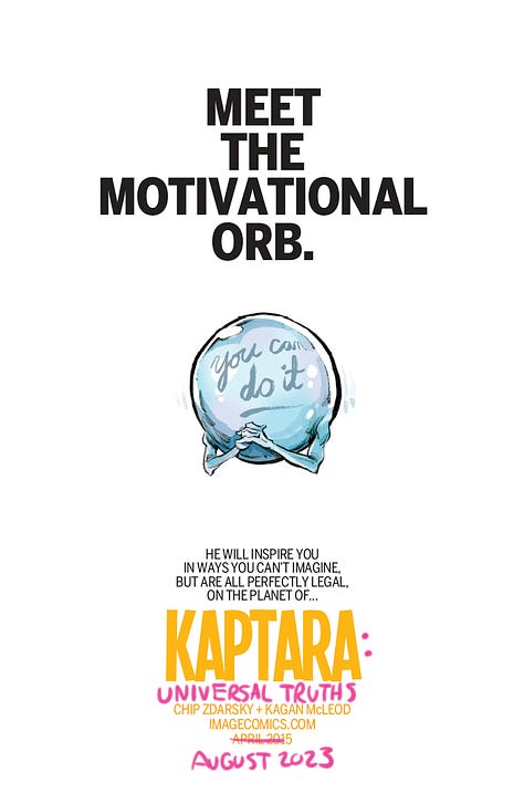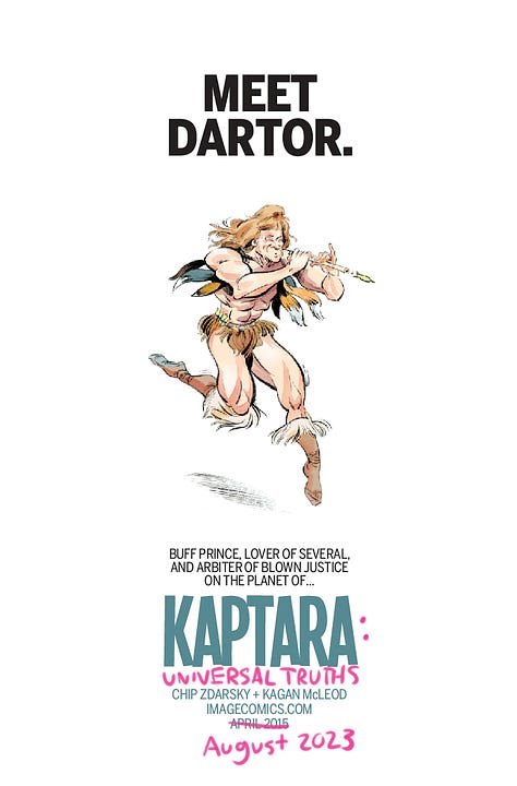 Monday is FINAL ORDER CUTOFF for the return of Kaptara at Image Comics with KAPTARA: UNIVERSAL TRUTHS #1 and I dug up some of our old ads for the previous volume. They still hold true so I’ve just gone ahead and updated them like the marketing genius that I am.
